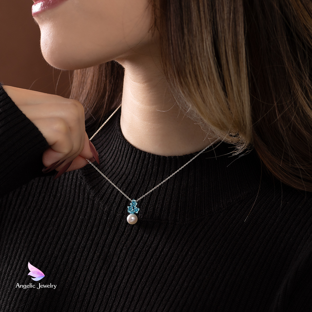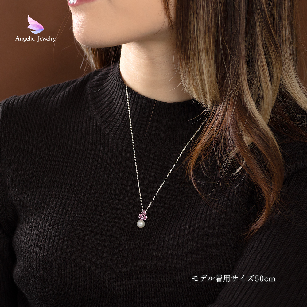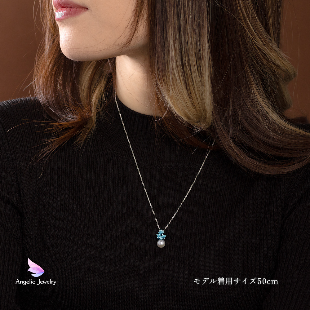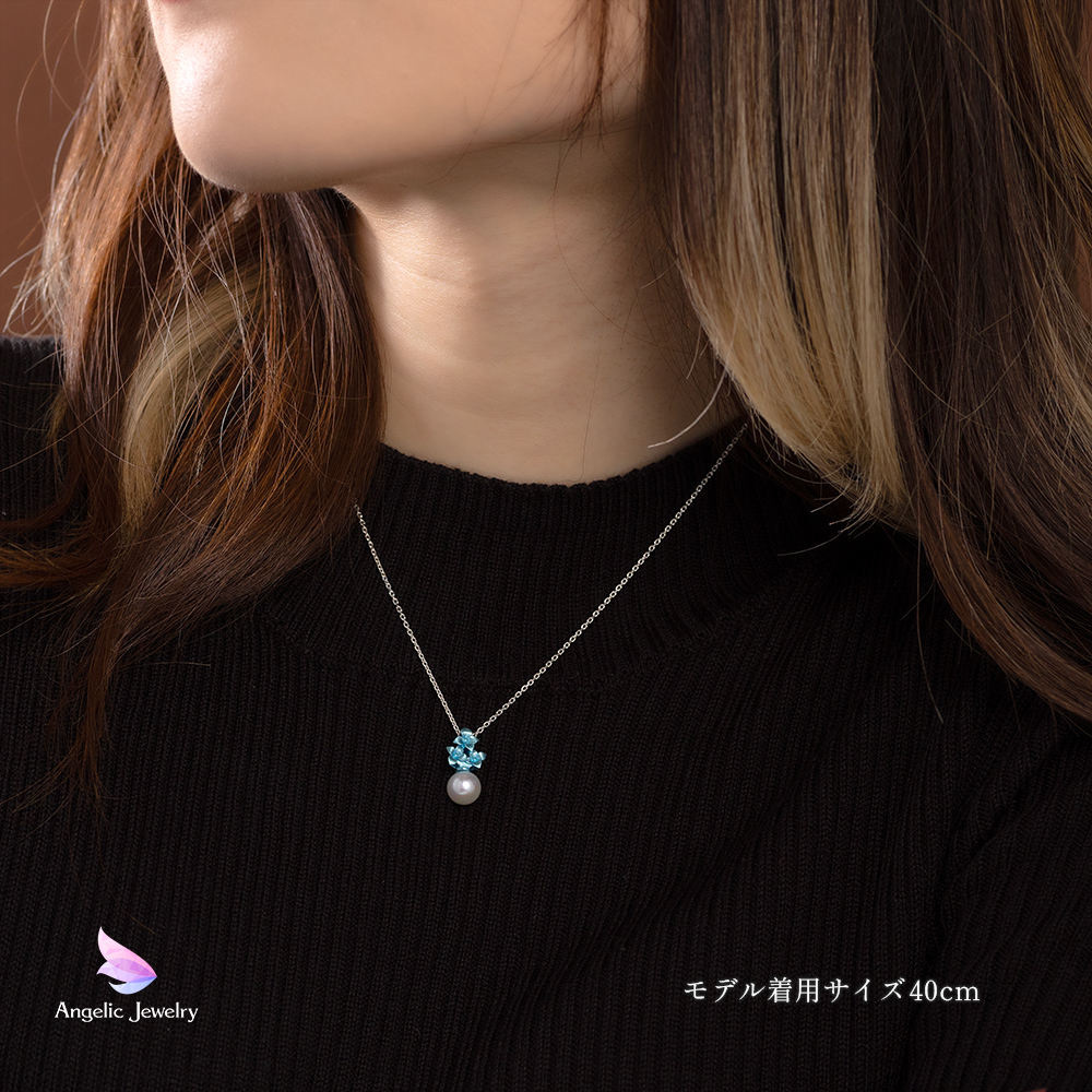 しっとりと咲く紫陽花と優雅なパールは胸元に上品さをもたらします。