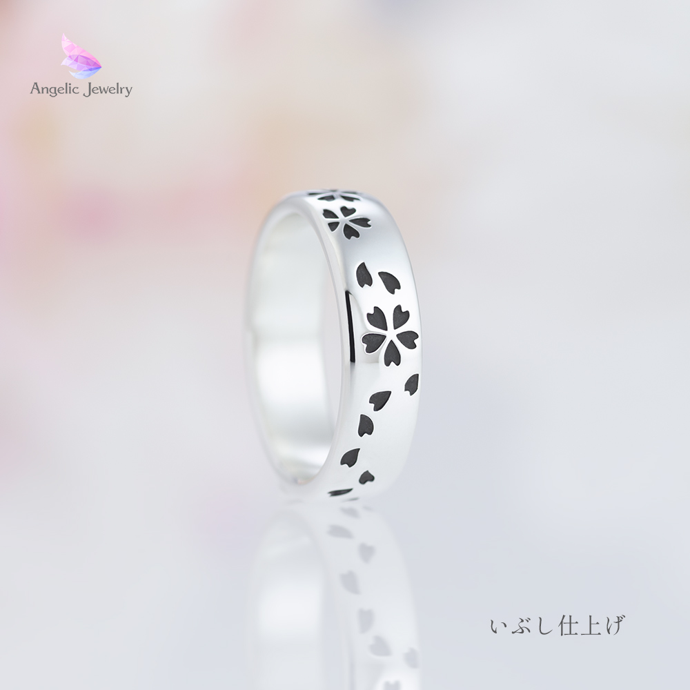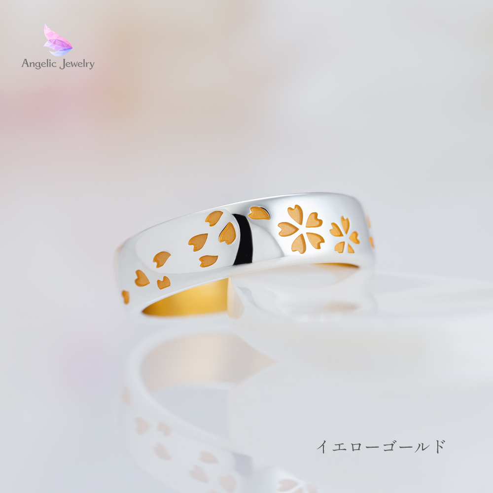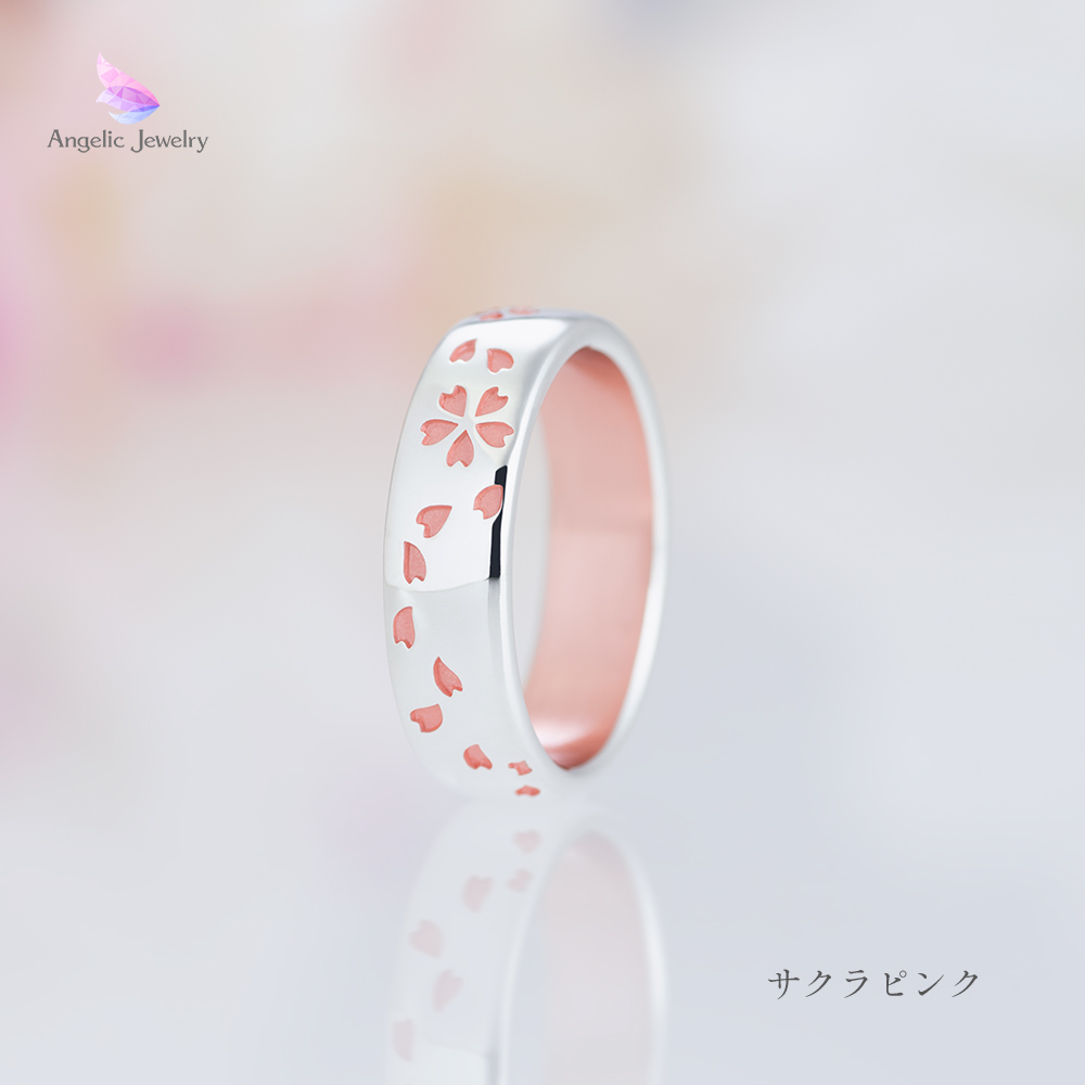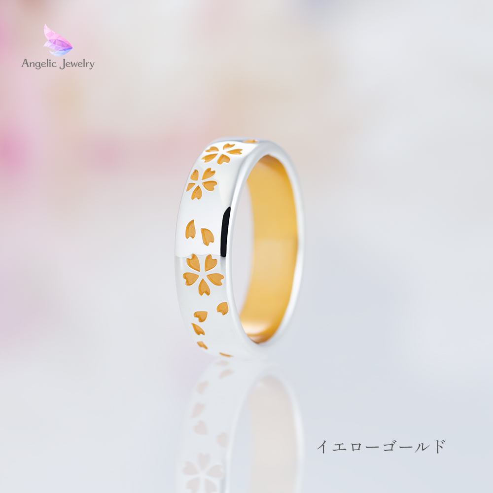 繊細な桜の花びらがリング一面を舞うシンプルで美しいリング。