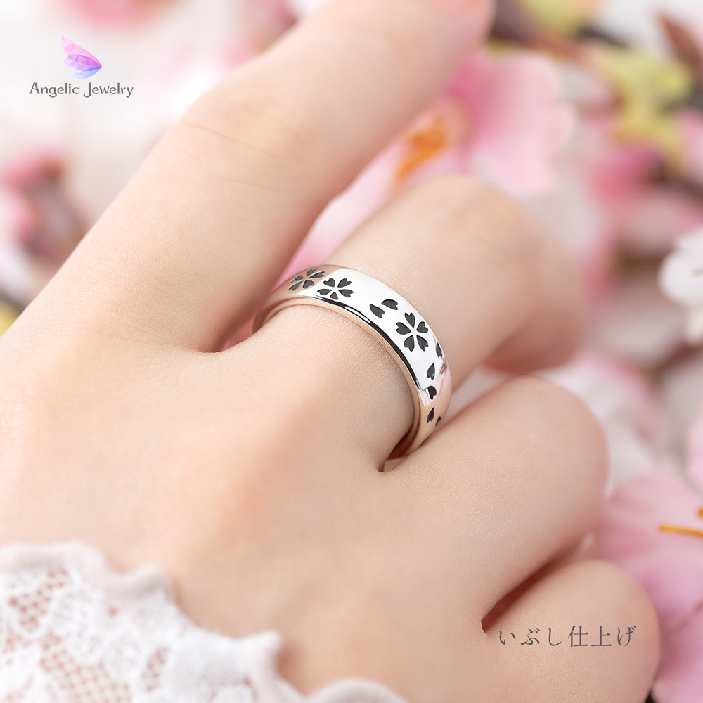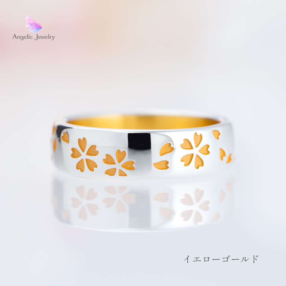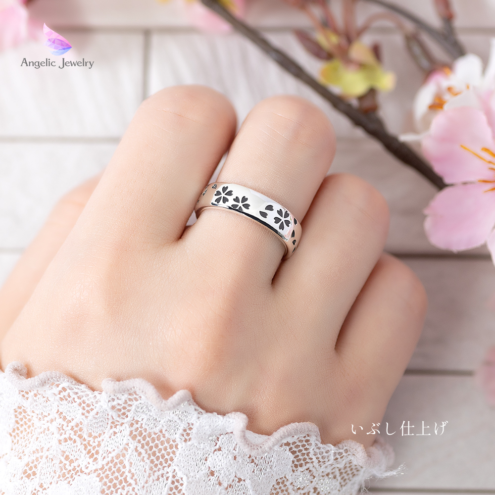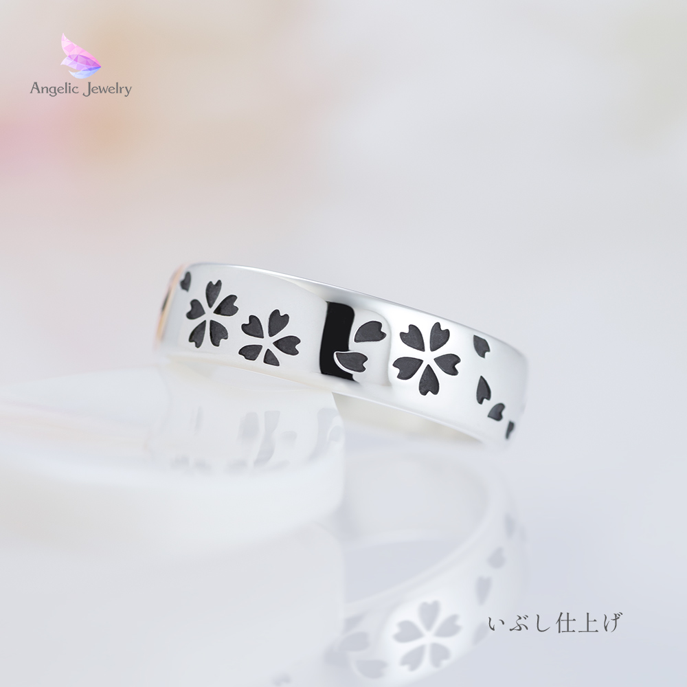 繊細な桜の花びらがリング一面を舞うシンプルで美しいリング。