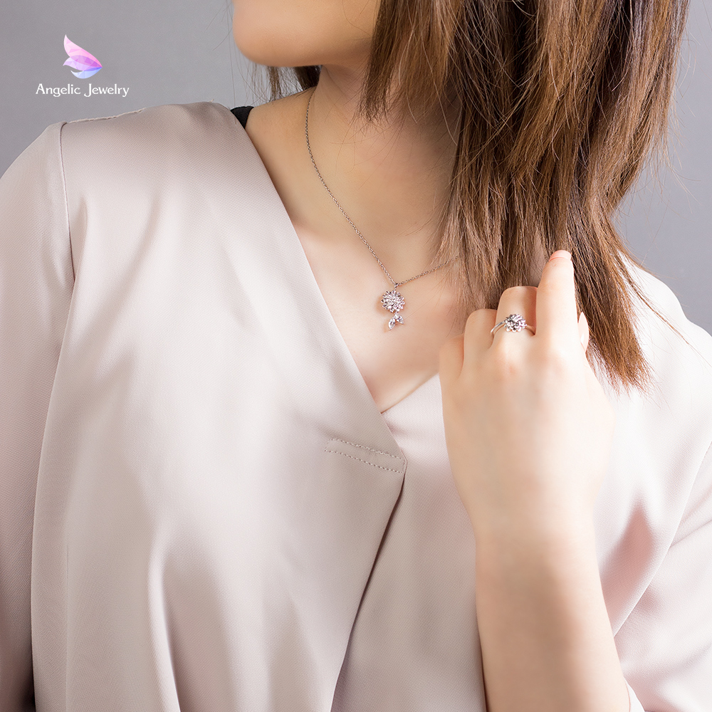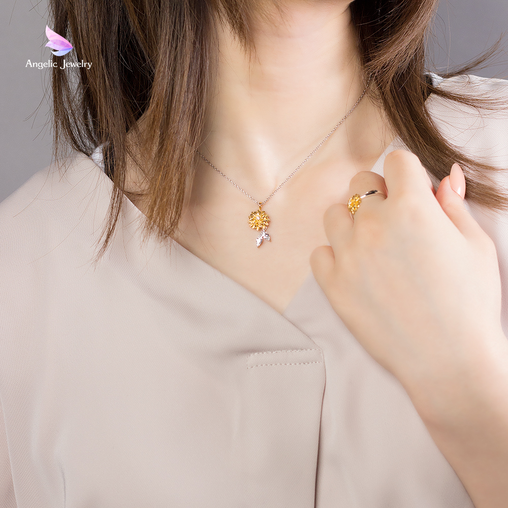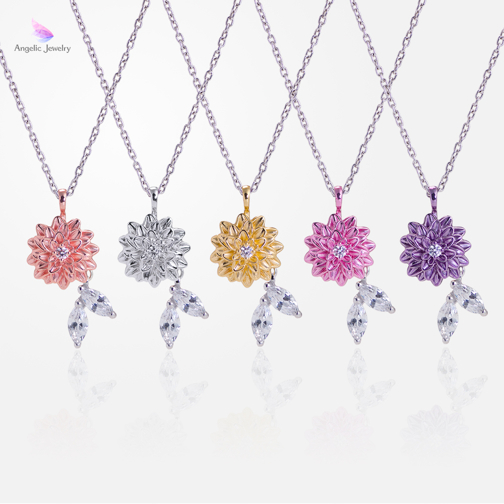 幾重にも重なる花びらが美しくも可愛らしいダリアのネックレス。