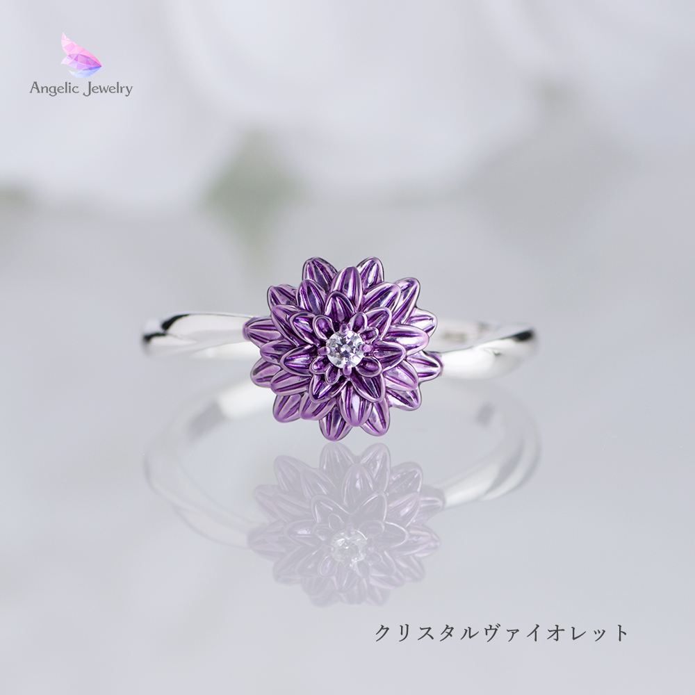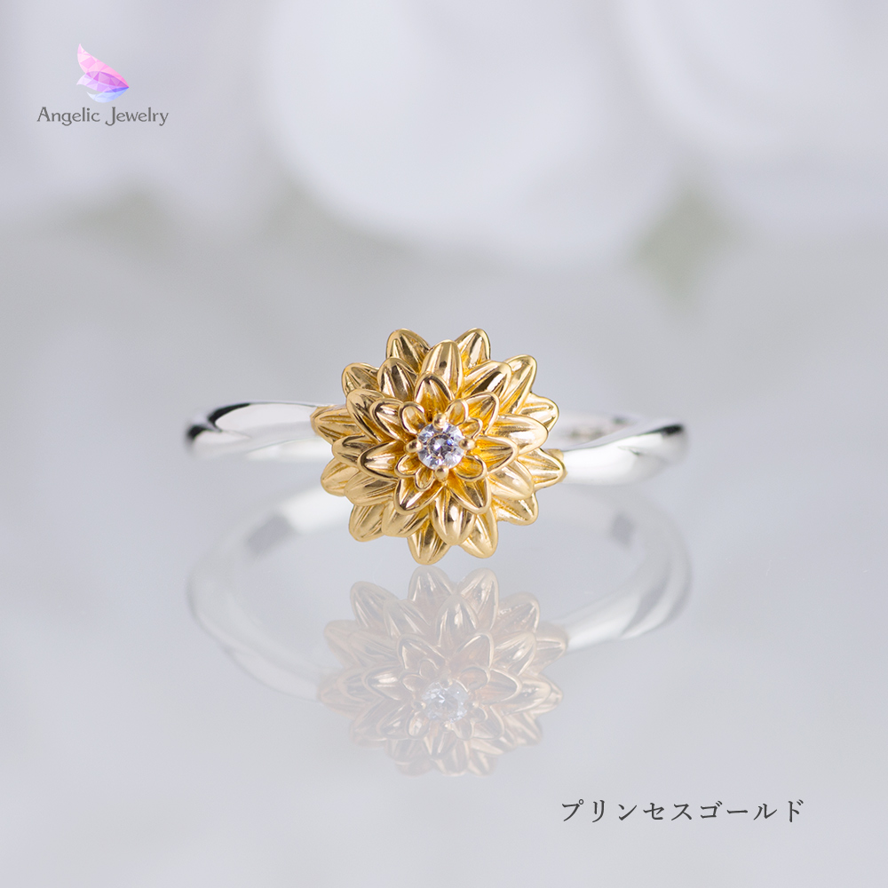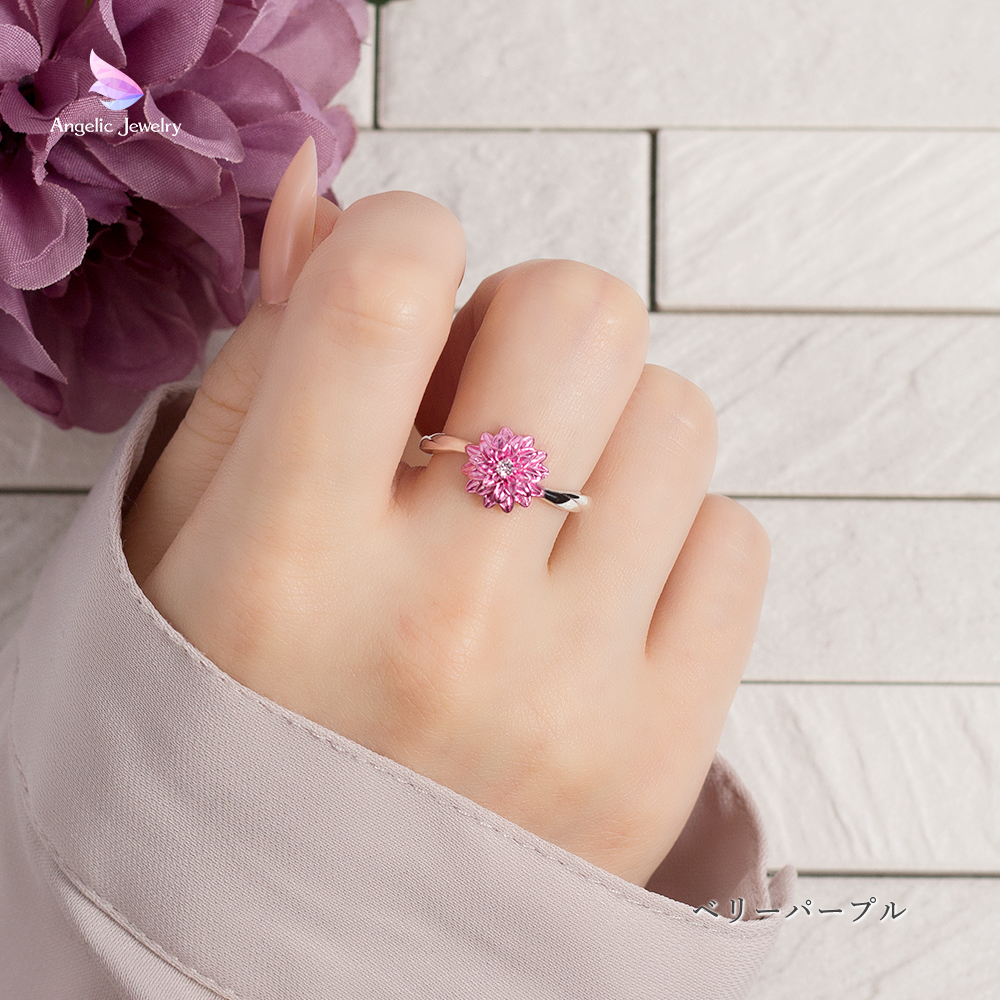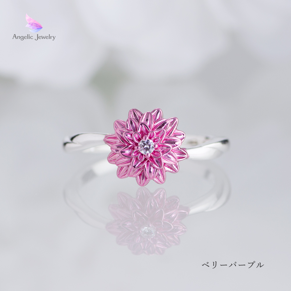 幾重にも重なる花びらが美しくも可愛らしいダリアのリング。