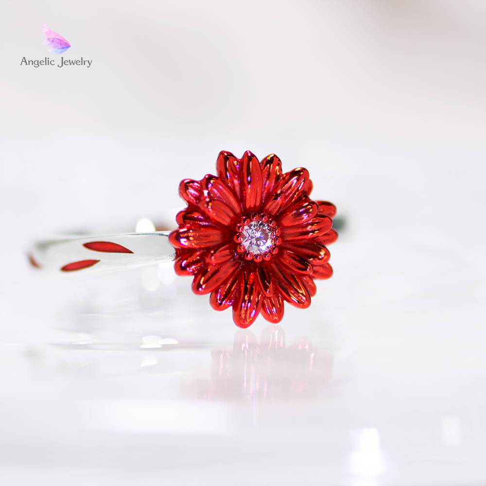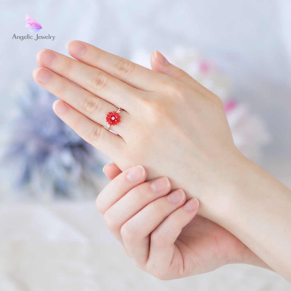 大輪のガーベラが咲き誇るリングの一輪バージョン。