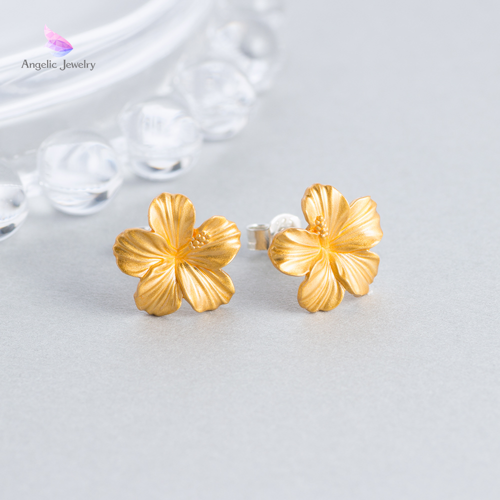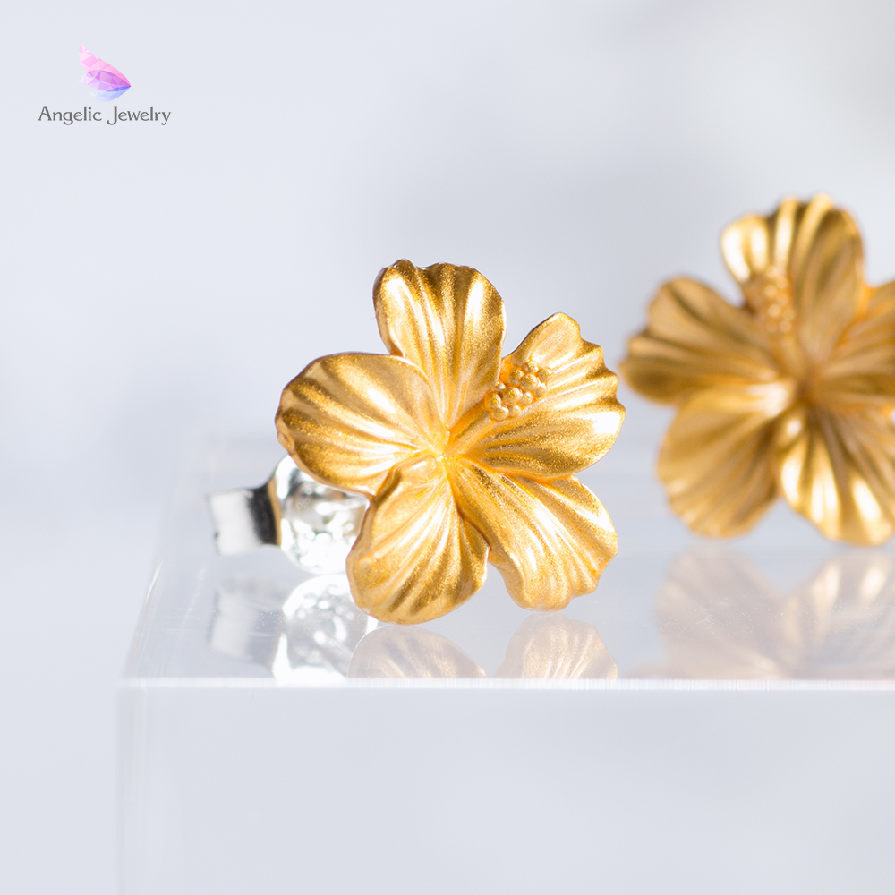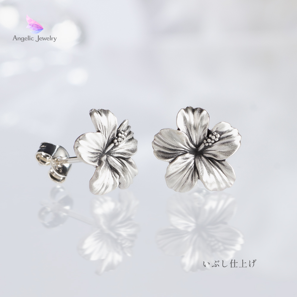 優美で活き活きと咲き誇るハイビスカスモチーフのピアス。