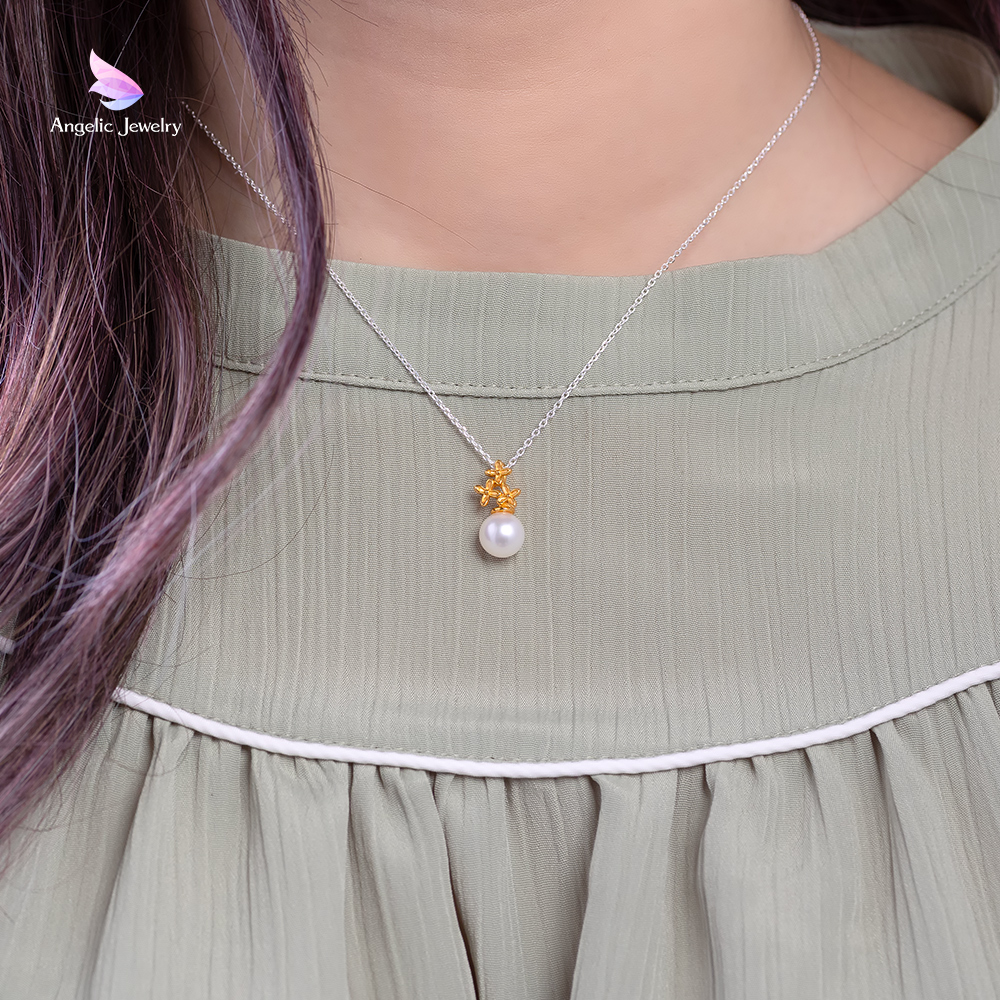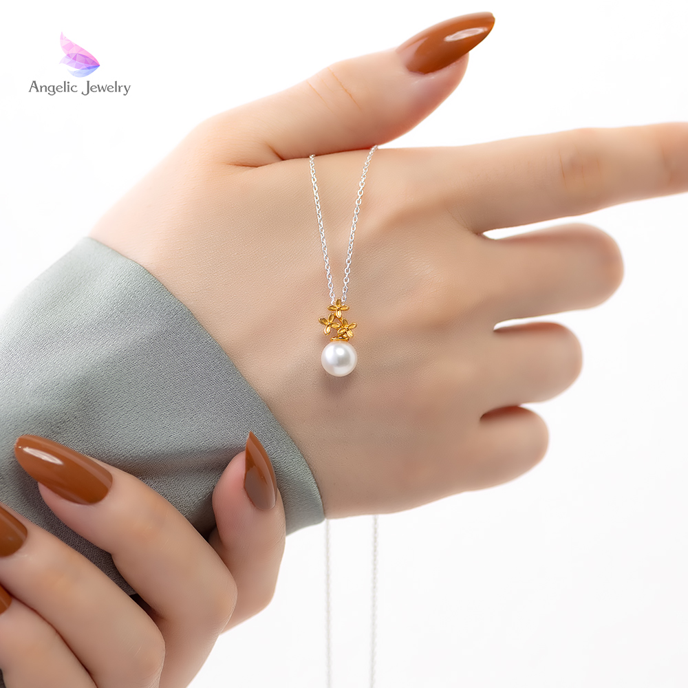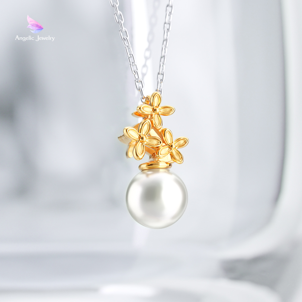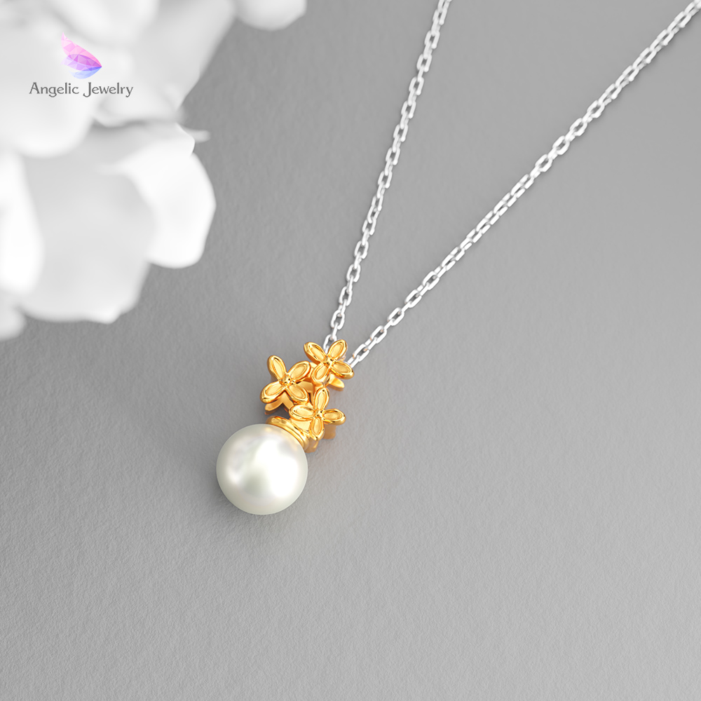 ゴールドにきらめく金木犀と優雅なパールは胸元に上品さをもたらします。