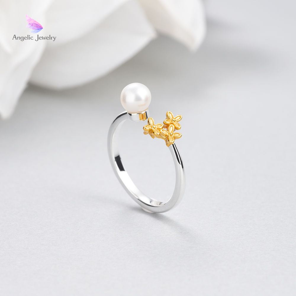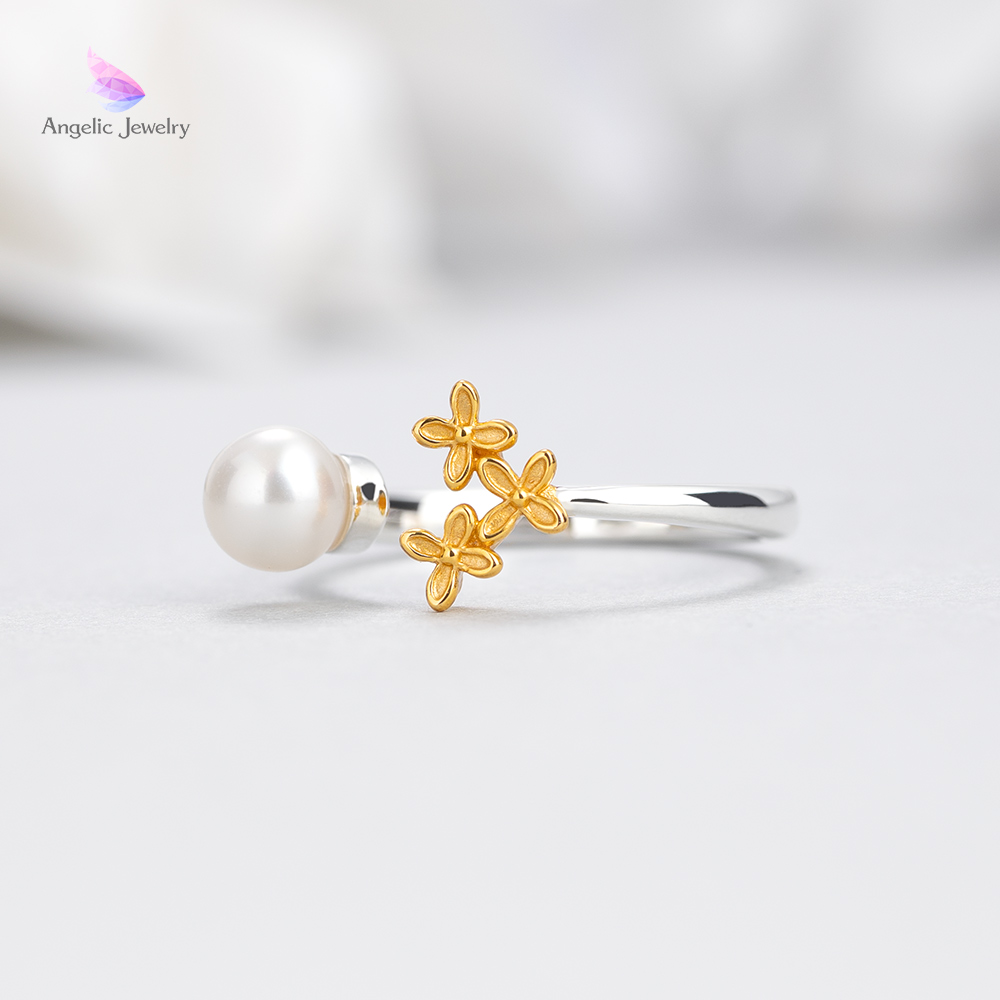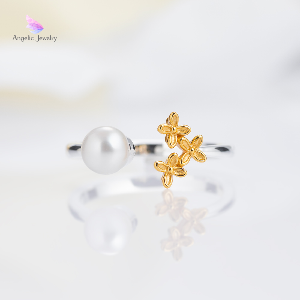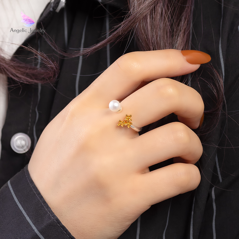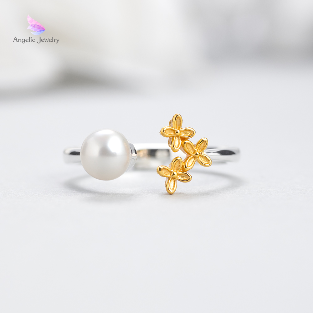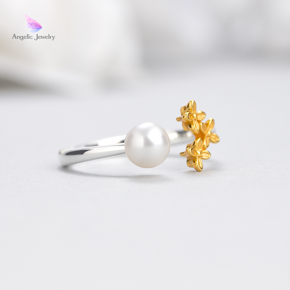 オープンリングデザインによって金木犀と優雅なパール、それぞれの個性を楽しんでいただけるリングです。