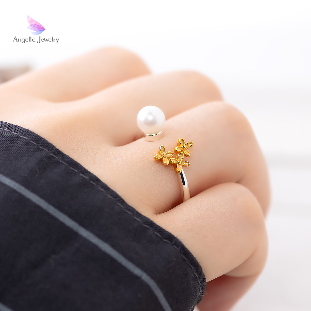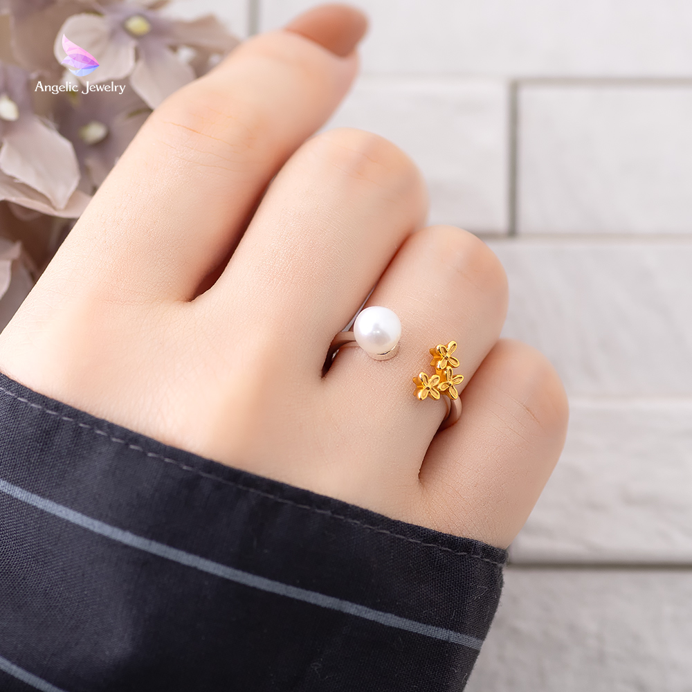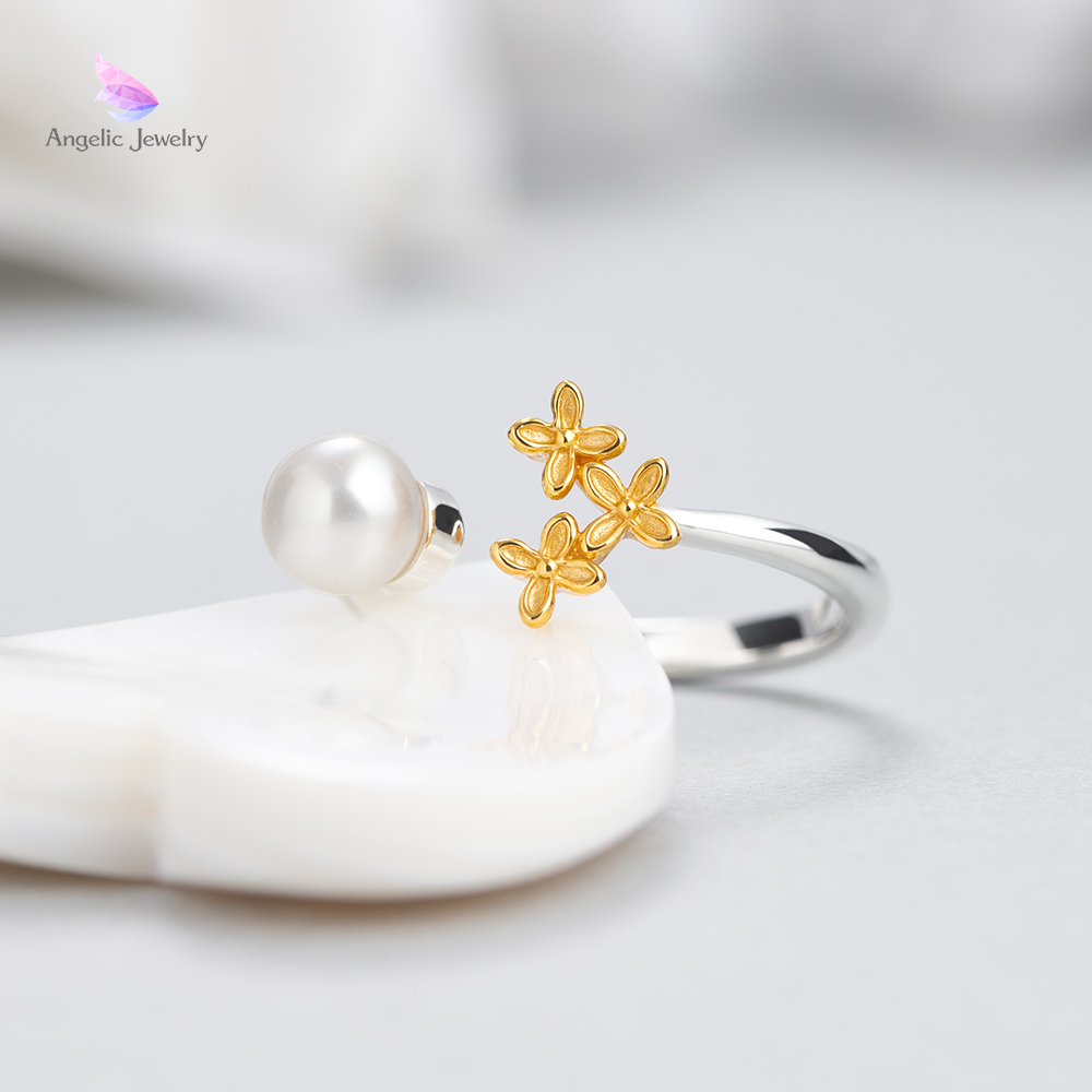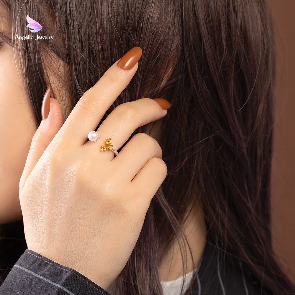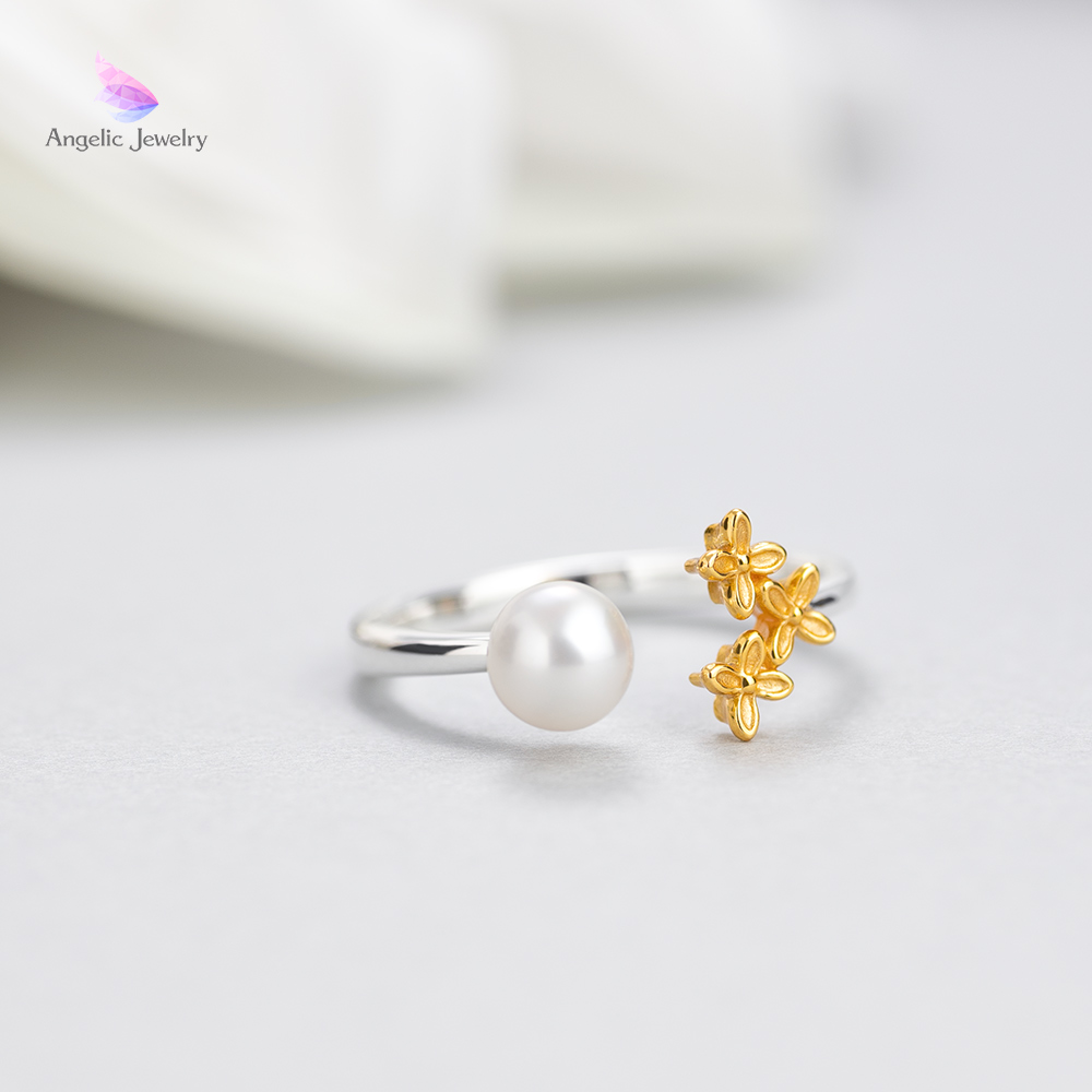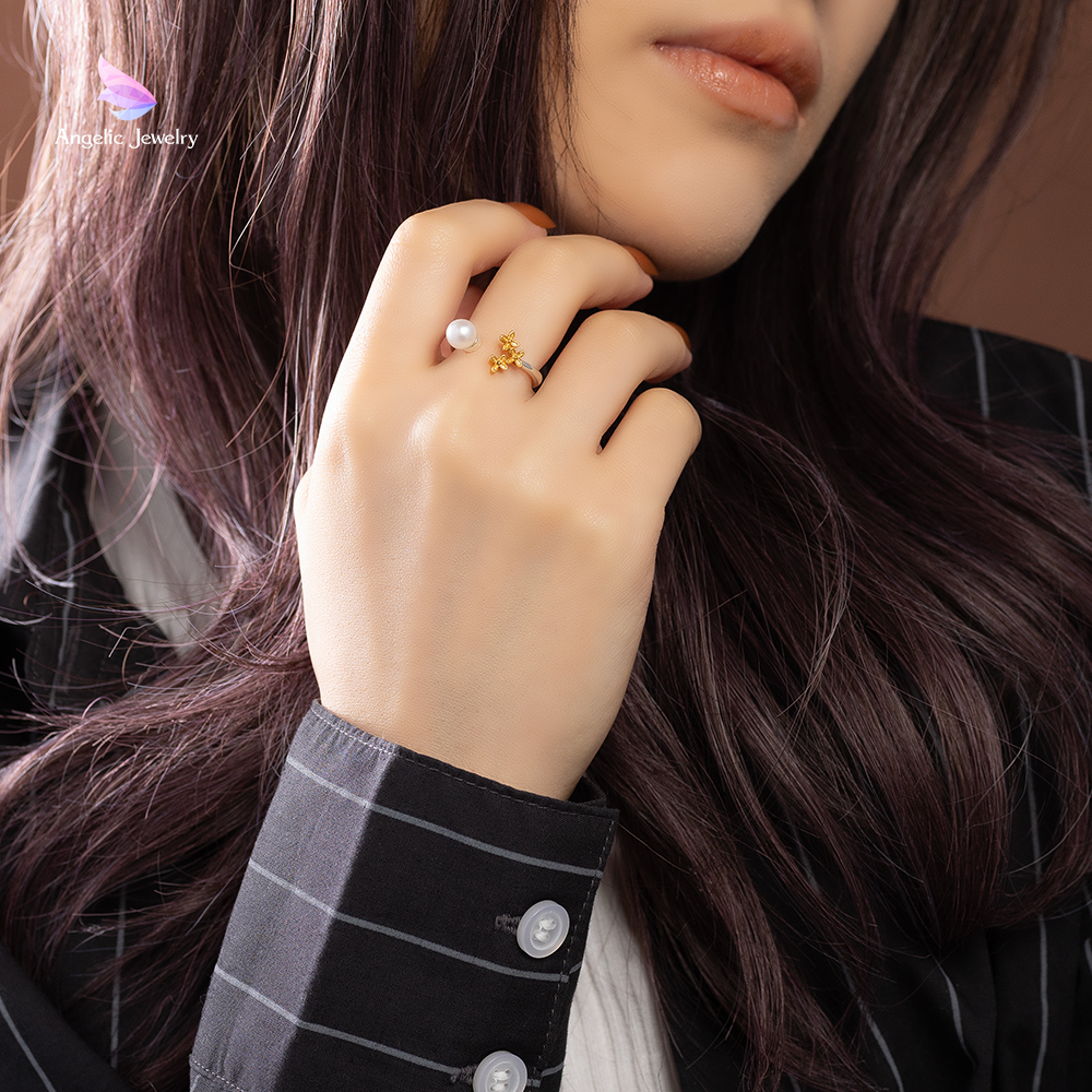 オープンリングデザインによって金木犀と優雅なパール、それぞれの個性を楽しんでいただけるリングです。