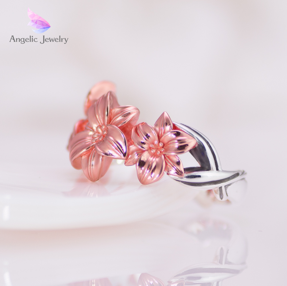 こちらの’large size’バージョンはお花を大きめにデザインしておりますので、百合の豪華さを楽しんでいただけるリングです。