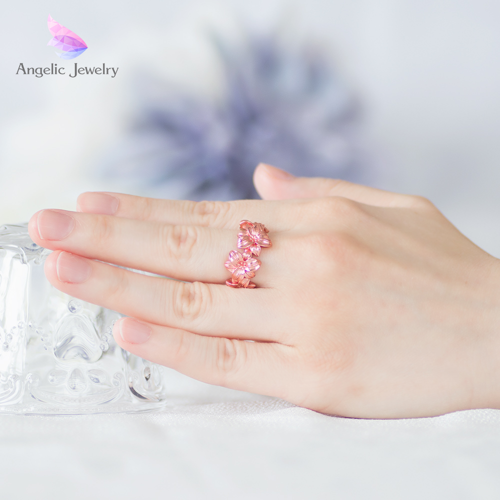 リング側面では開花を待つつぼみがお花をやさしく包み込んでいます。