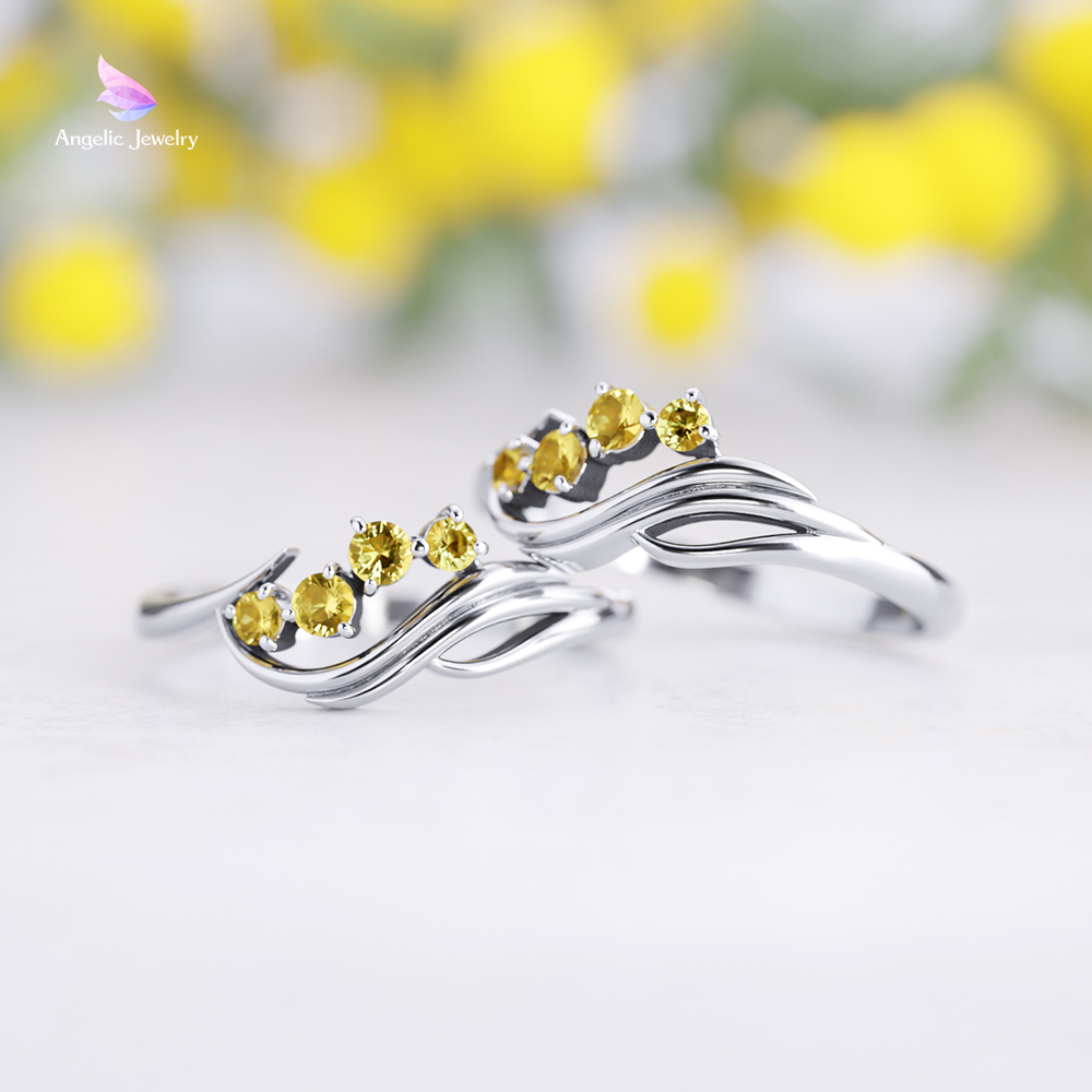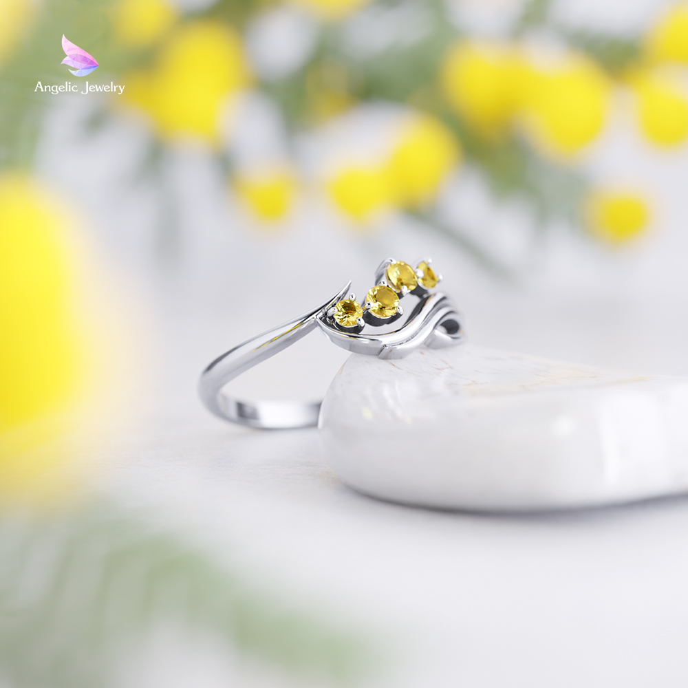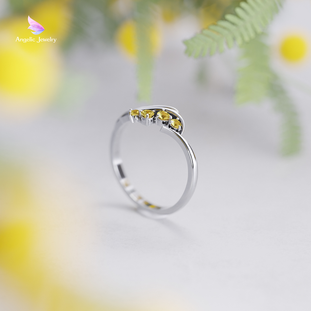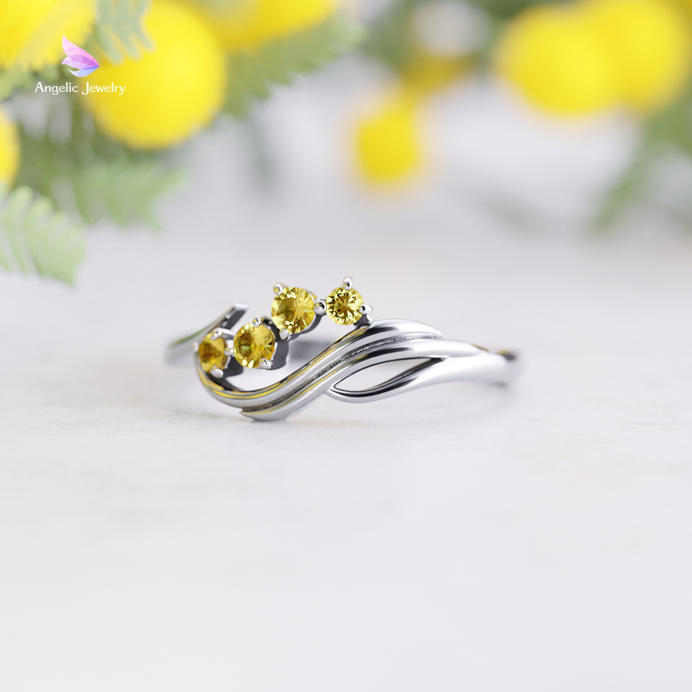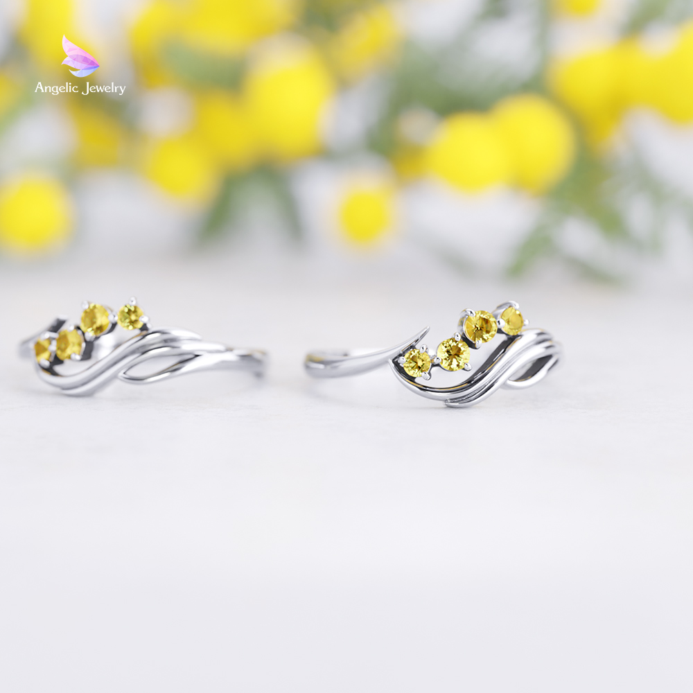 ミモザの花を鮮やかな黄色の天然シトリンで、風にたなびく葉をしなやかなラインでデザインしました。