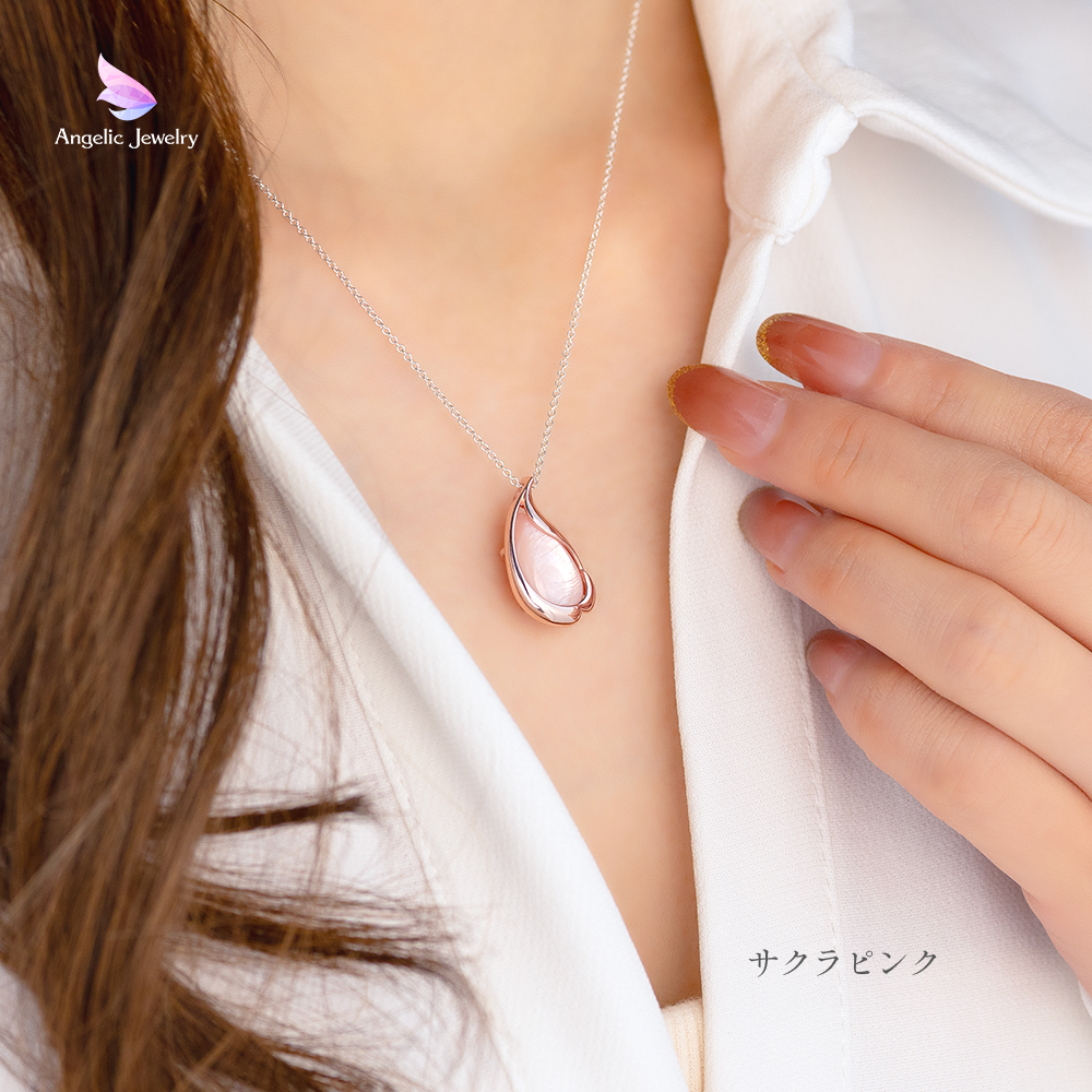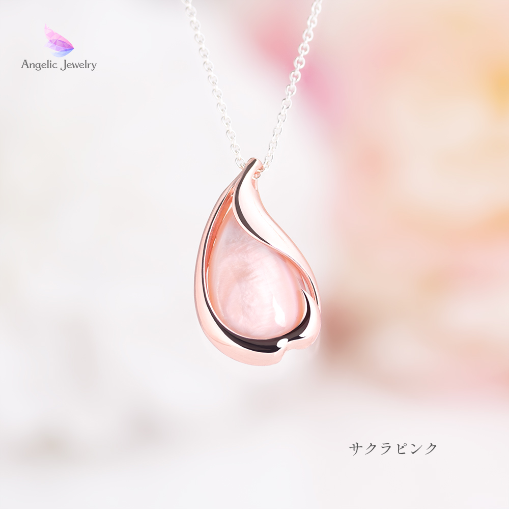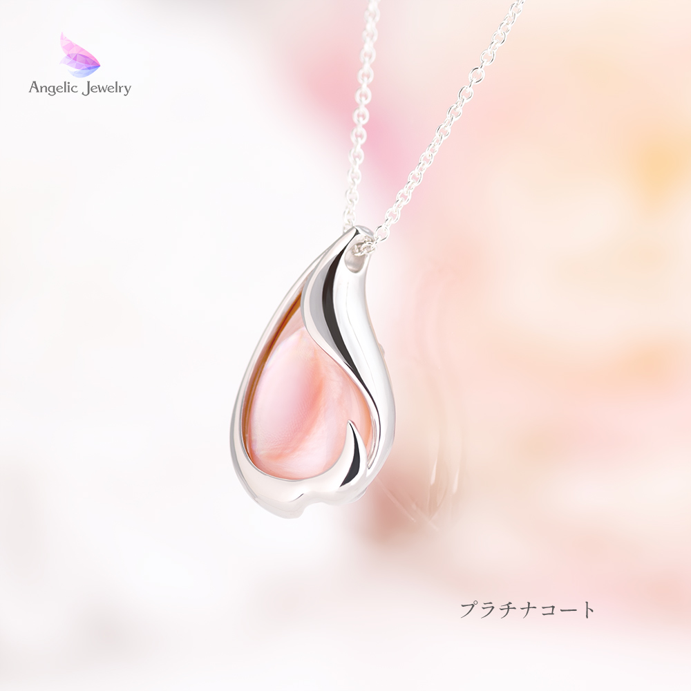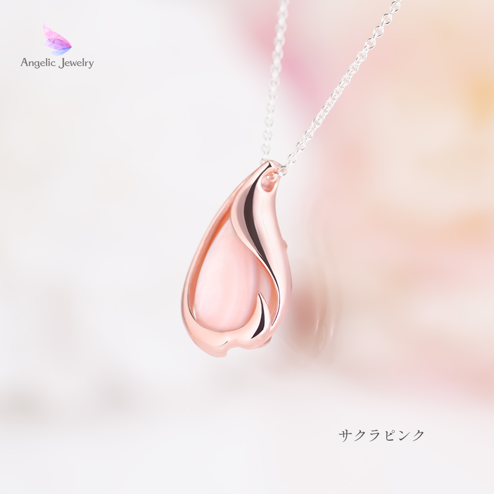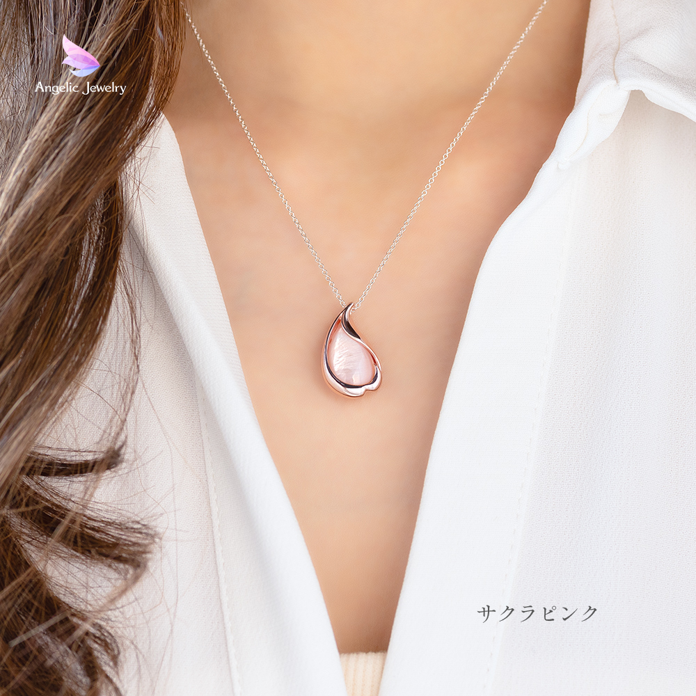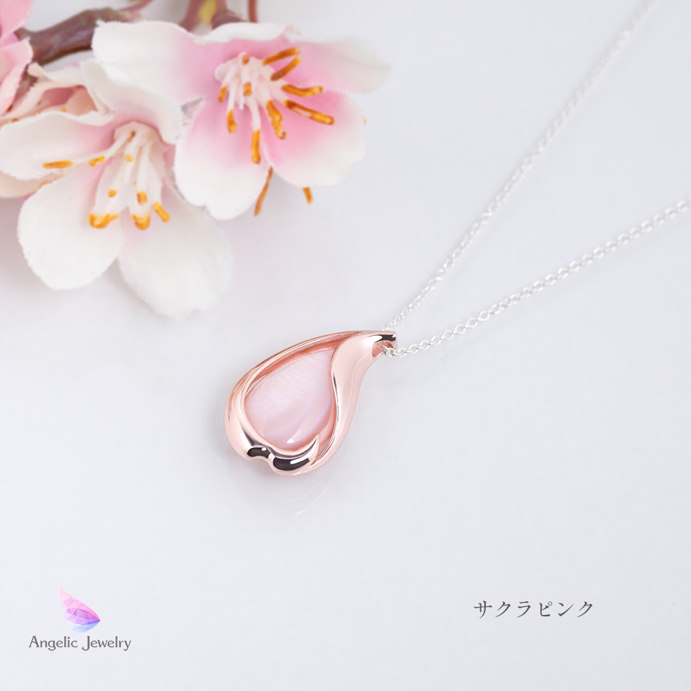 桜の花びらをデザインしたピンクマザーオブパールのネックレス。