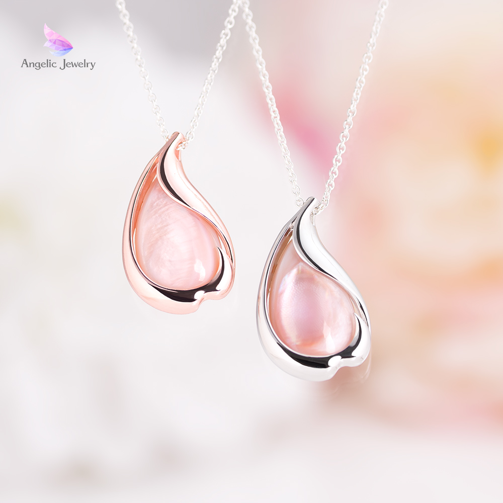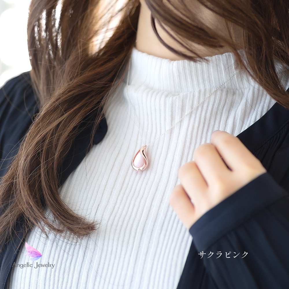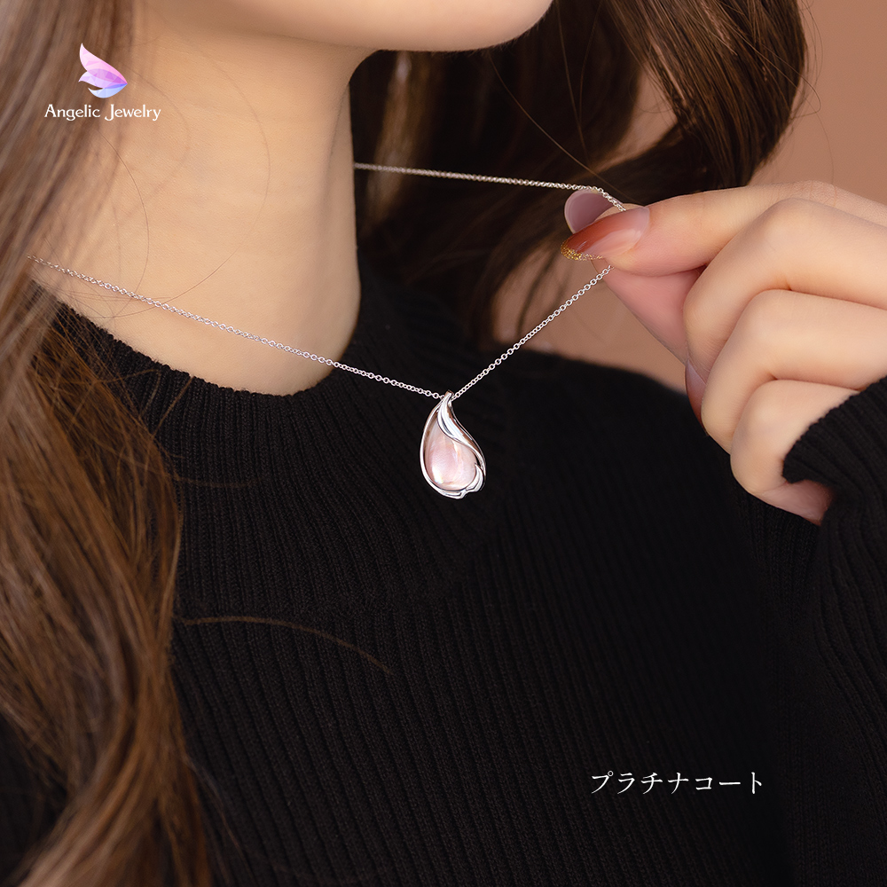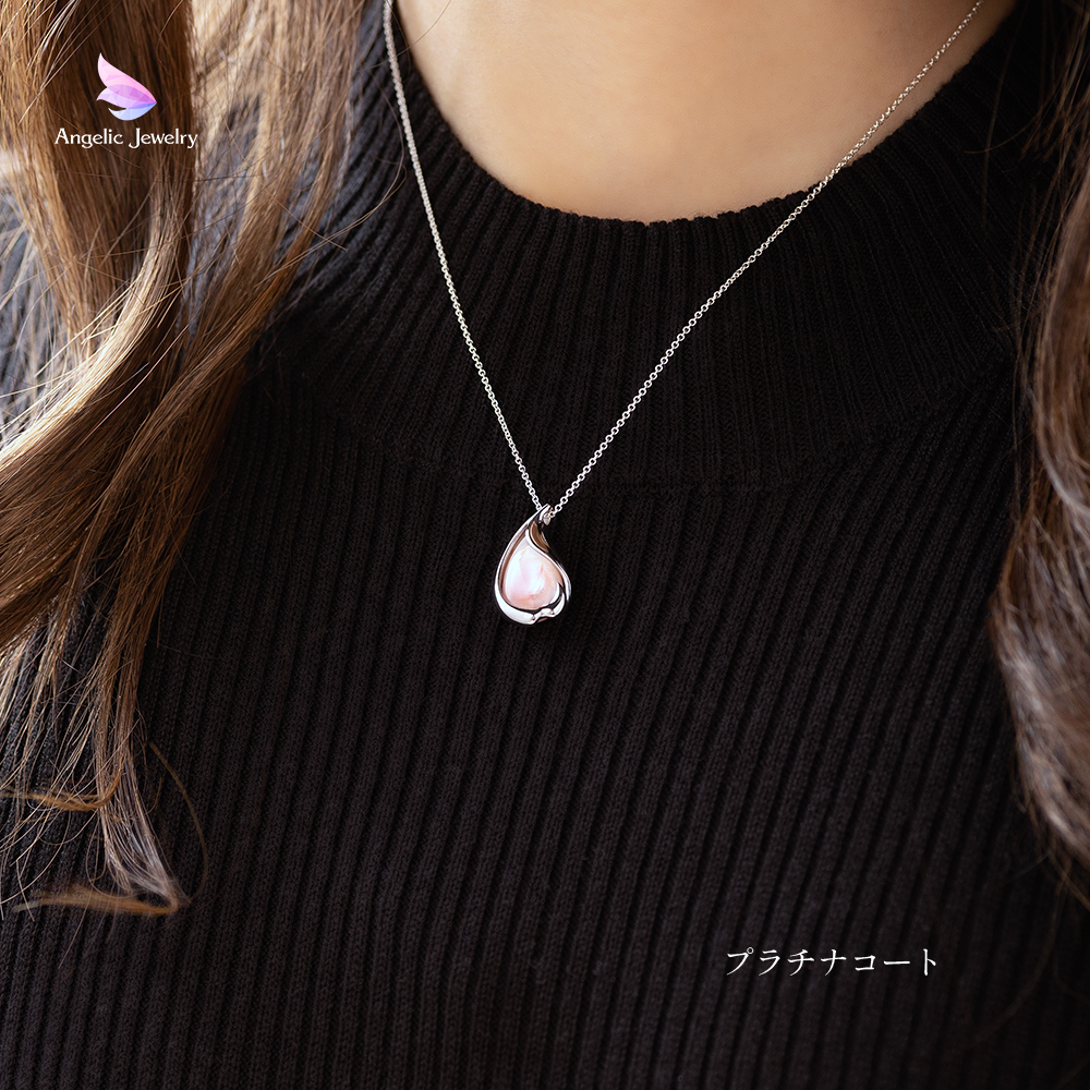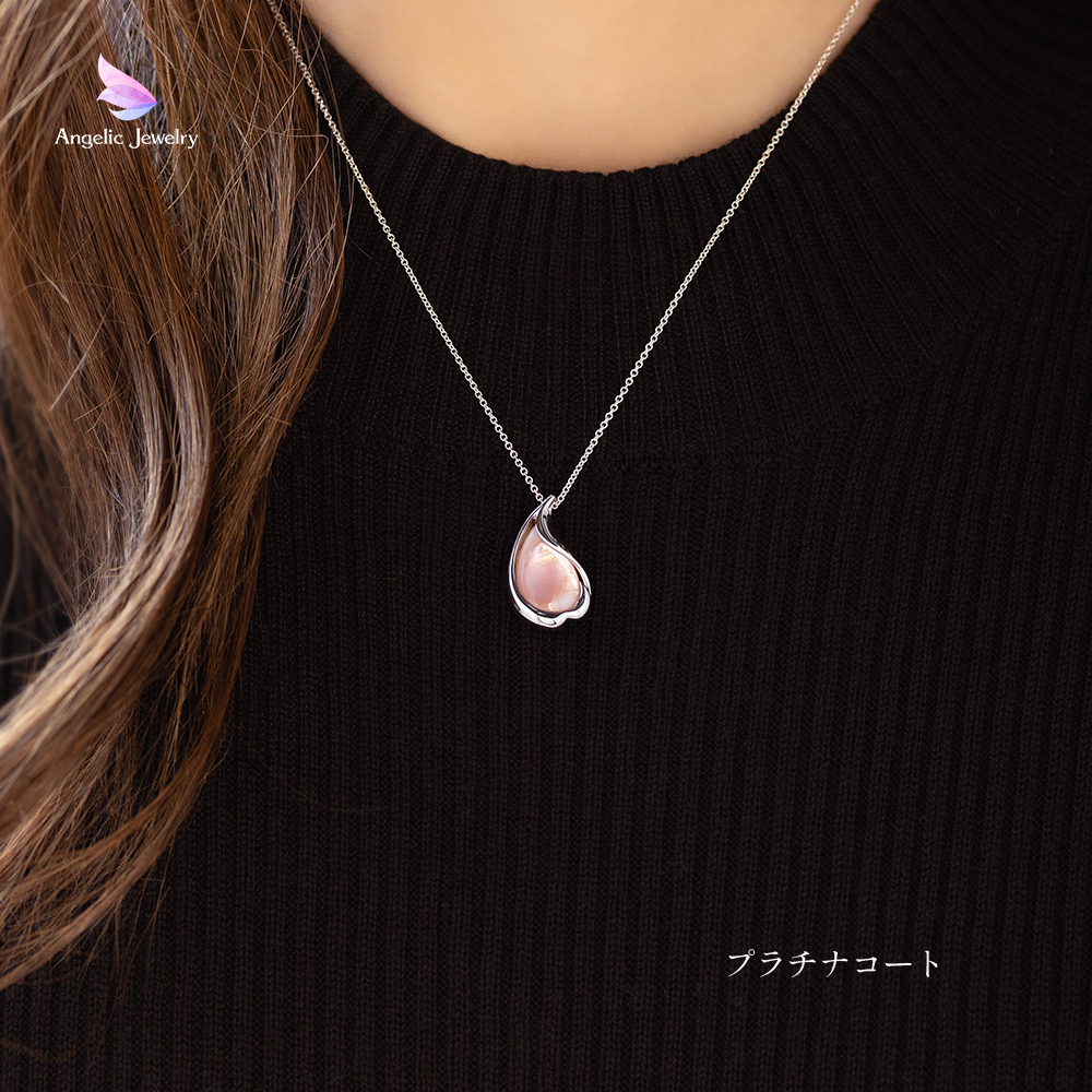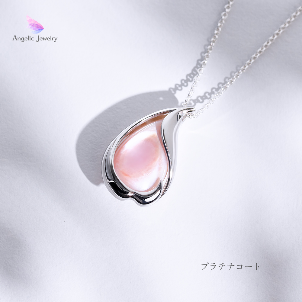 桜の花びらをデザインしたピンクマザーオブパールのネックレス。
