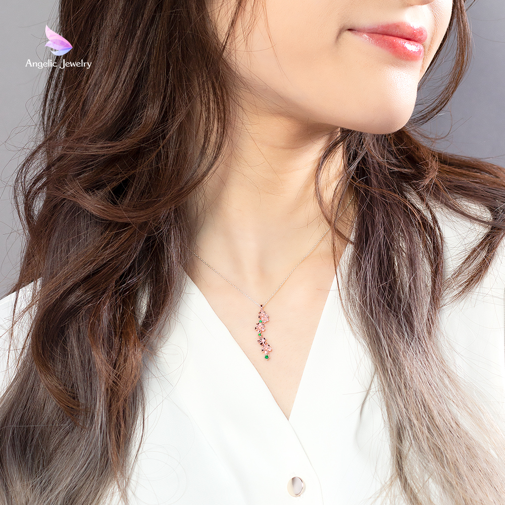 しだれ桜をイメージしたネックレスの「左タイプ」 繊細できらびやかな桜が胸元に春をまとわせます。