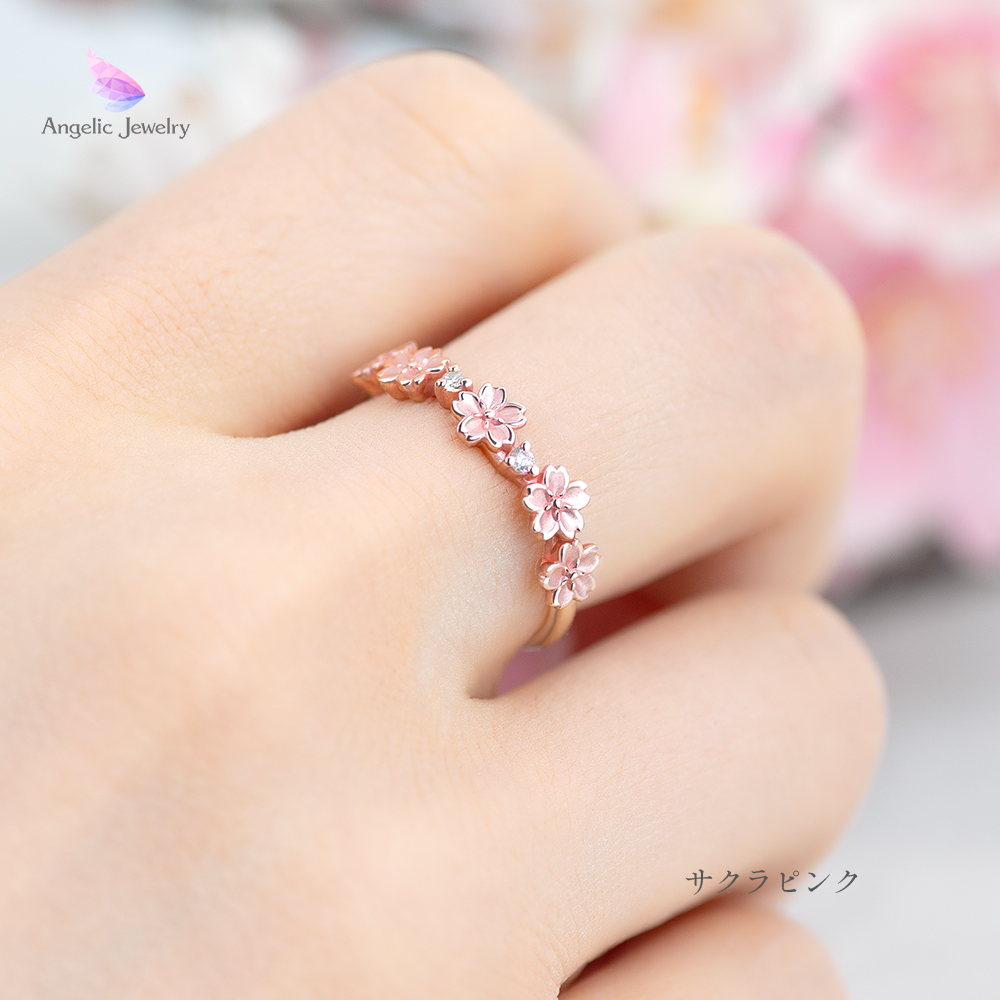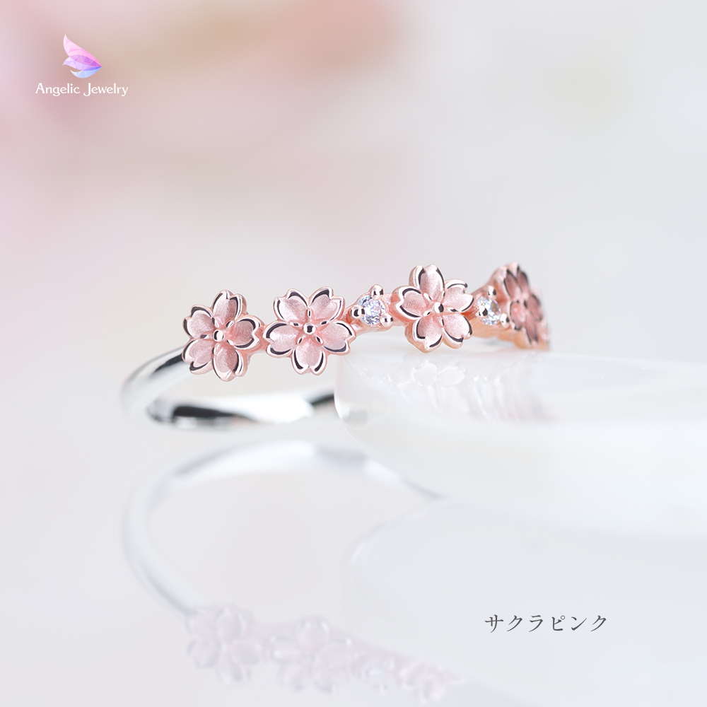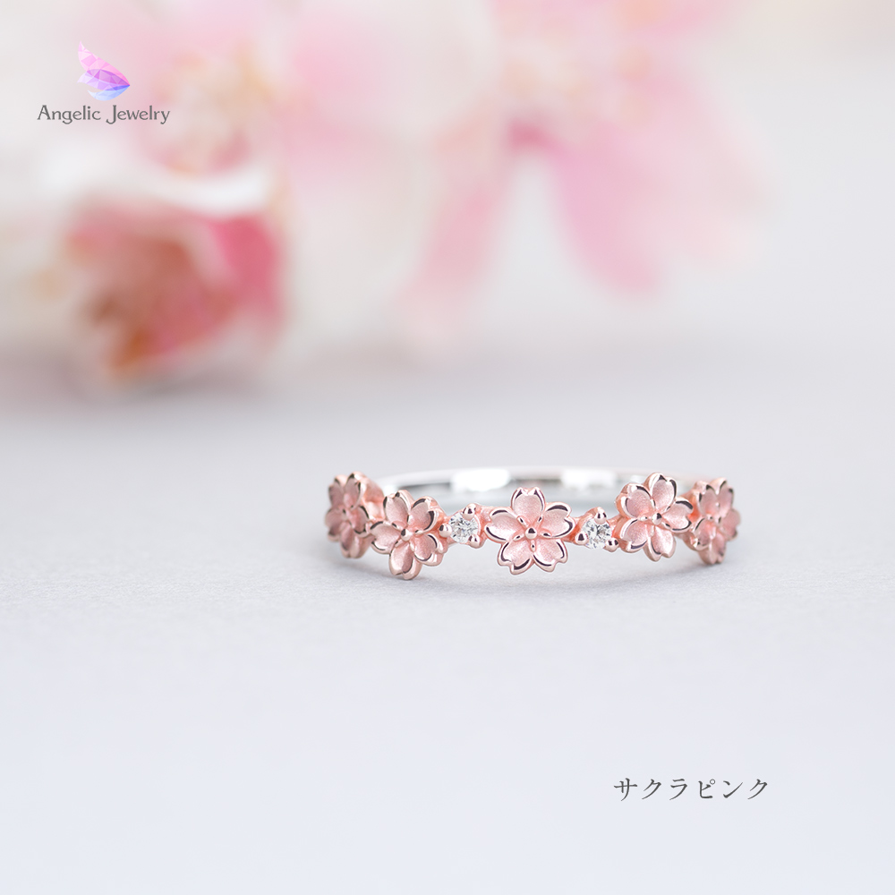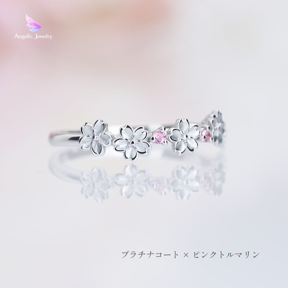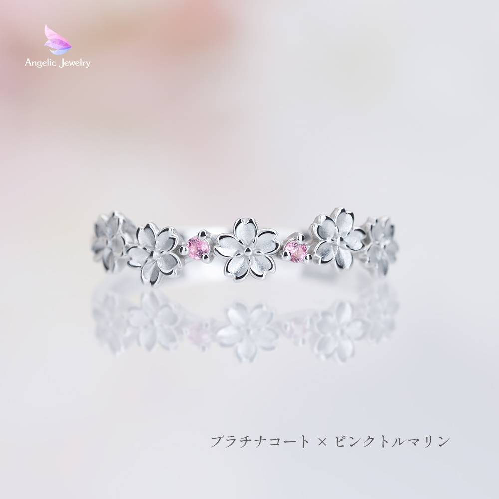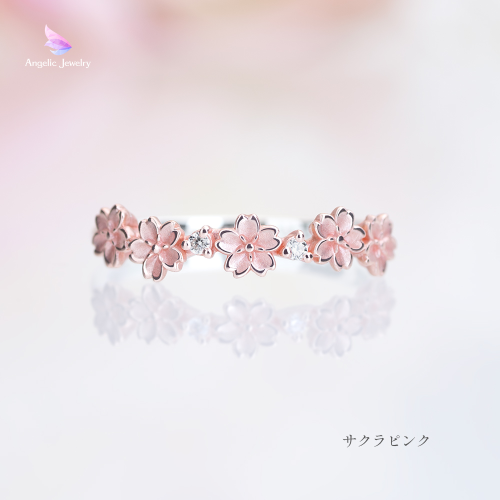 桜の間に添えたストーンが、朝露のように静かにきらめきます。
