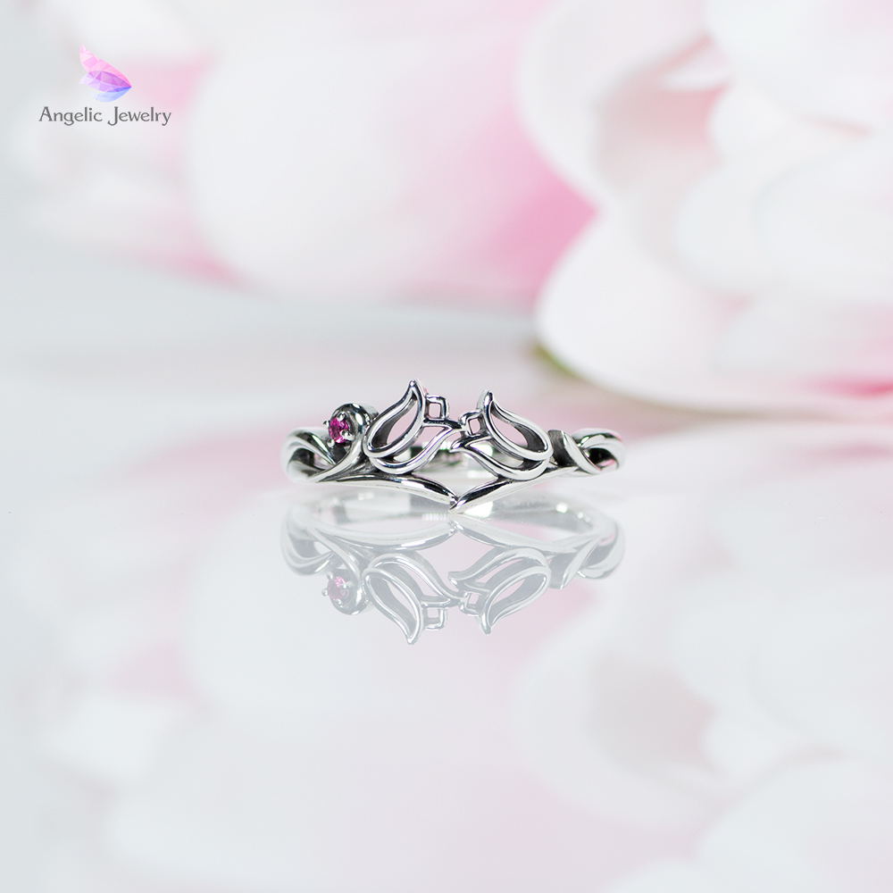 2輪のチューリップとしなやかな葉っぱをアシンメトリーデザインで表現しました。